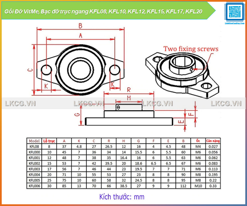 Gối Đỡ VitMe, Bạc đỡ trục ngang KFL08, KFL10, KFL12, KFL15, KFL17, KFL20