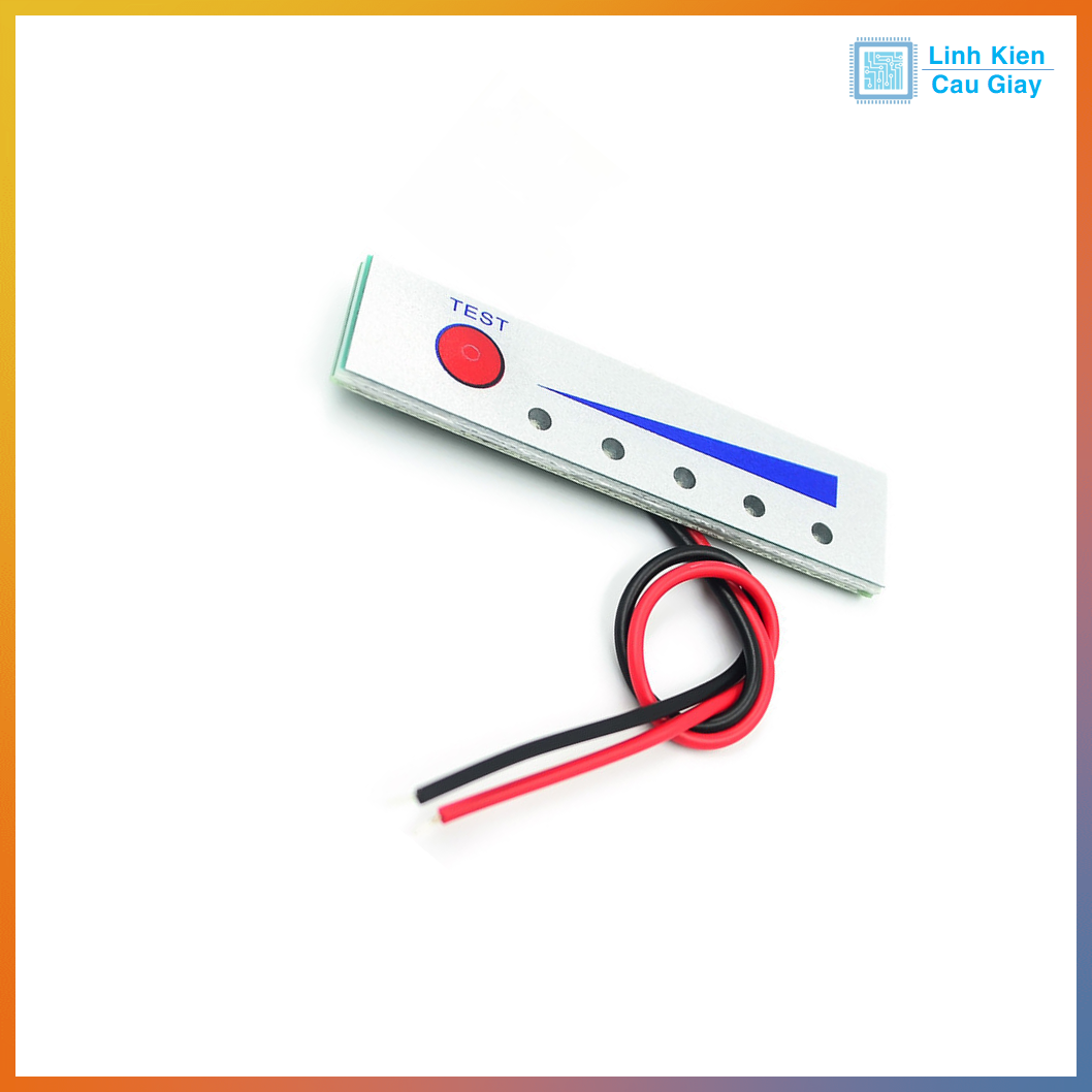 Bảng đèn báo hiệu dung lượng pin LiPo, Lithium Vs1 là thiết bị nhỏ gọn giúp kiểm tra và hiển thị mức dung lượng pin LiPo hoặc Lithium một cách trực quan thông qua 4 đèn LED tương ứng với các mức 25%, 50%, 75% và 100%. Sản phẩm có thiết kế đơn giản với vỏ nhựa màu xám, tích hợp nút bấm "TEST" và dây cáp 2 chân (đỏ: VCC, đen: GND) để kết nối với pin. Module này hỗ trợ nhiều loại pin LiPo/Lithium với điện áp từ 3.7V đến 14.8V, phù hợp cho các ứng dụng RC, drone, và dự án DIY. Với kích thước nhỏ gọn và cách sử dụng dễ dàng, đây là công cụ lý tưởng để theo dõi trạng thái pin một cách nhanh chóng và an toàn.