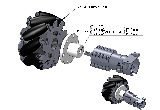 Bánh xe mecanum 100mm,bánh vệ tinh có bạc đạn ,bộ gồm 2 trái và 2 phải