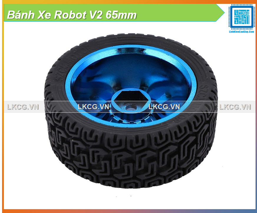 Thiết kế bánh có đường kính 65mm, chiều rộng khoảng 26mm, dễ dàng lắp ráp với các loại động cơ giảm tốc TT, DC mini, N20 thông qua khớp nối. Đây là linh kiện cơ bản và cần thiết cho các dự án DIY robot di động.
