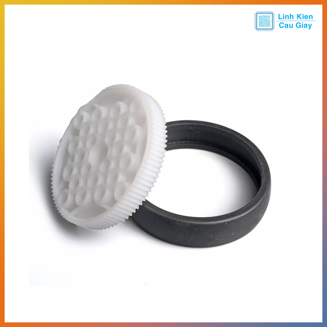 Thiết kế gồm vành nhựa có bánh răng tích hợp sẵn, và lốp cao su chống trượt có thể tháo rời giúp tăng độ bám đường, giảm rung lắc khi robot vận hành.