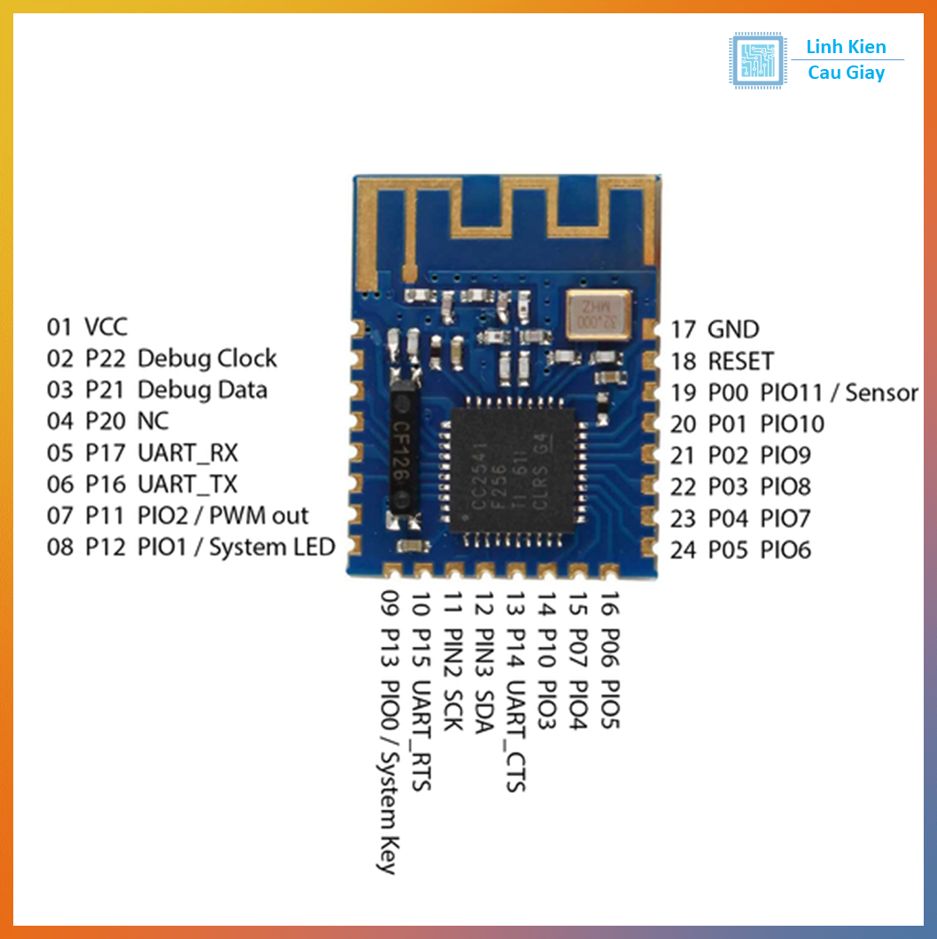 Hoạt động ở dải tần 2.4GHz ISM, giao tiếp UART đơn giản, hỗ trợ AT Command để cấu hình tên, tốc độ baud, chế độ làm việc.