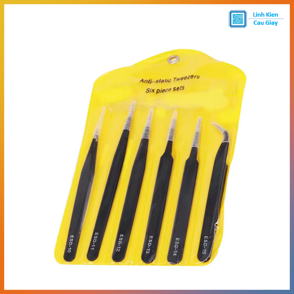 Bộ 6 nhíp inox chống tĩnh điện (ESD) chuyên dùng cho sửa chữa điện tử, lắp ráp linh kiện SMD, làm mô hình và các công việc yêu cầu độ chính xác cao.