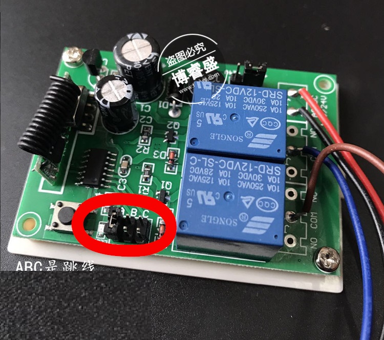 - Chế độ khóa liên động: Nhấn nút A trên remote để đóng relay 1, nhấn nút A lần nữa relay không thay đổi. Nhấn nút B trên remote để đóng relay 2, đòng thời ngắt relay 2.