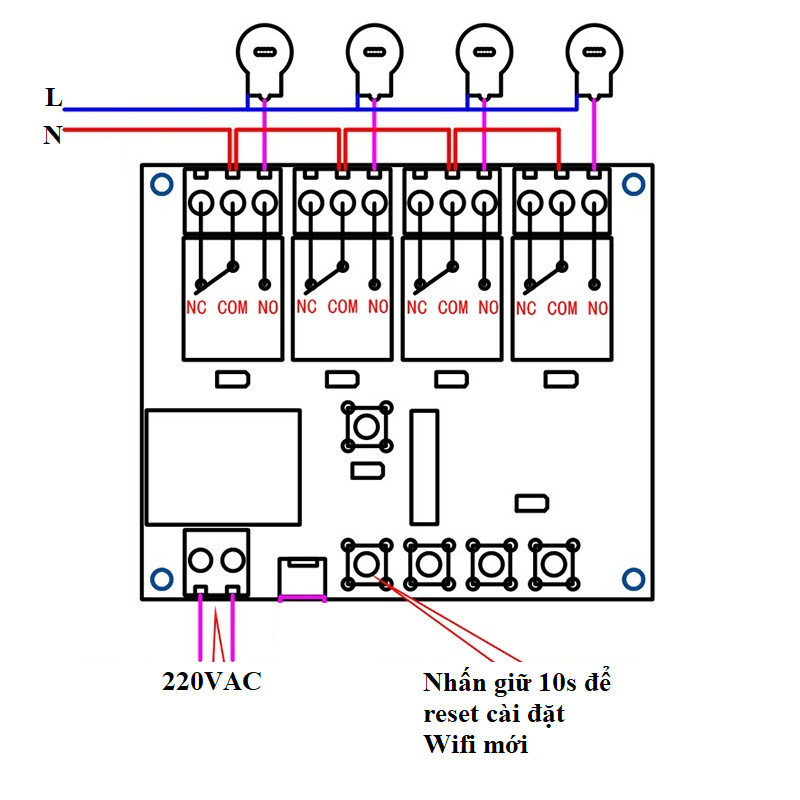 Bộ điều khiển thiết bị qua wifi 4 kênh (4 thiết bị 220)