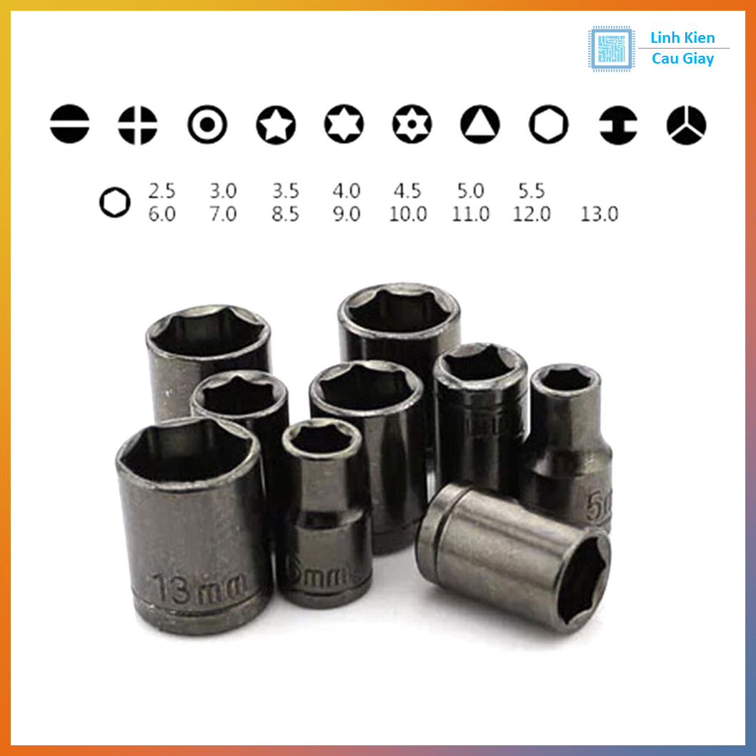 Chất liệu đầu vít: Thép hợp kim mạ chrome hoặc thép cr-v