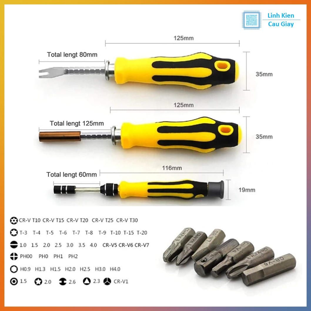 Tất cả các chi tiết đều được làm từ thép hợp kim, xử lý nhiệt, tăng độ bền và chống gỉ sét. Đây là lựa chọn lý tưởng cho kỹ thuật viên, DIYer, thợ sửa điện tử, chủ hộ gia đình cần bộ sửa chữa đa năng.