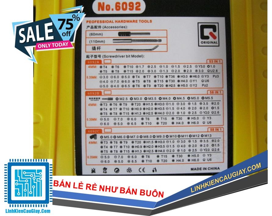 +Bộ tua vít đa năng 70 chi tiết này còn có hơn 57 đâu nối vít với kích thước và thiết kế khác nhau được chia thành 6 nhóm như sau: