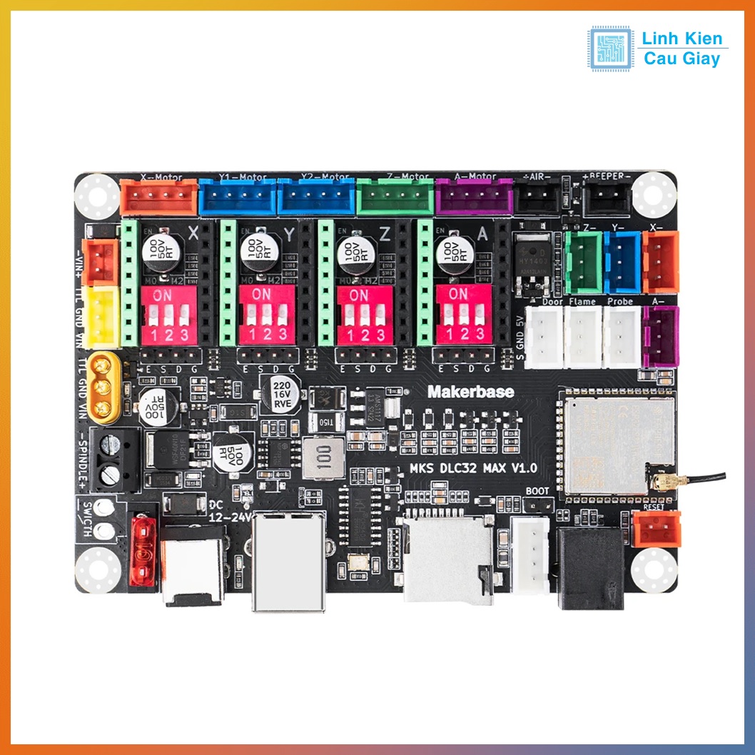 Bo mạch điều khiển máy CNC MKS DLC32 MAX là bo mạch chủ CNC/Laser hiệu suất cao 32-bit dùng chip ESP32-S3 siêu mạnh, hỗ trợ điều khiển máy CNC router, máy laser khắc/cắt, máy khắc bảng, 4-axis CNC, cho phép hoạt động offline mà không cần PC liên tục.