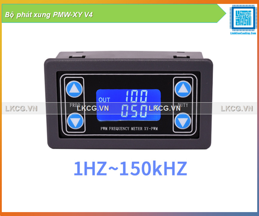 The PWM Signal Generator Module combines an accurate 0-150kHz PWM square-wave generator with pushbutton controls and LCD display that shows frequency and duty cycle..