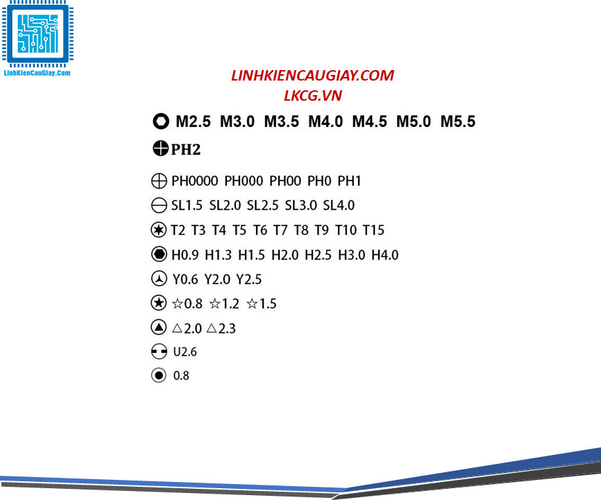 ??bảng các đầu vít chi tiết xem trên album hình các bạn nhé