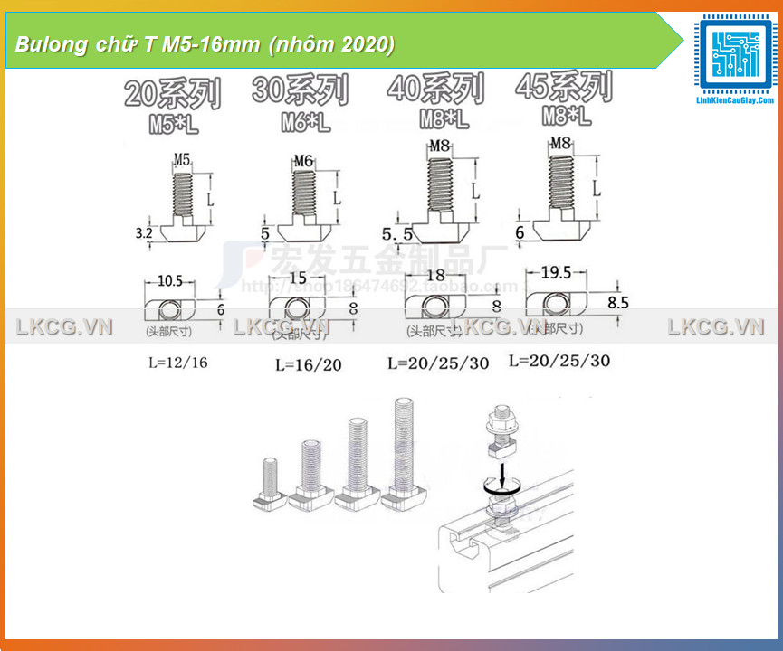 Bulong chữ T M5-16mm (nhôm 2020)