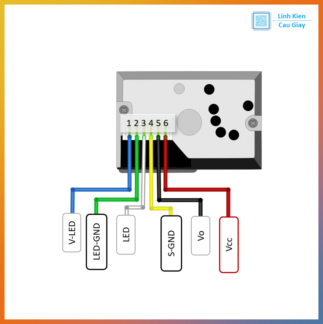 Pin 5 (Vo): Ngõ ra analog tỷ lệ với nồng độ bụi.