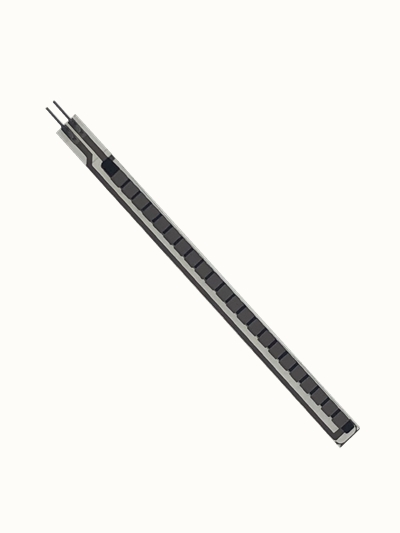 Đây là cảm biến uốn cong flex sensor, dài khoản 58mm được sử dụng trong găng tay điện tử của Nintendo. Khi kim loại của cảm biến bị uốn cong ra ngoài, điện trở của cảm biến sẽ thay đổi, để có thể phát hiện độ cong.