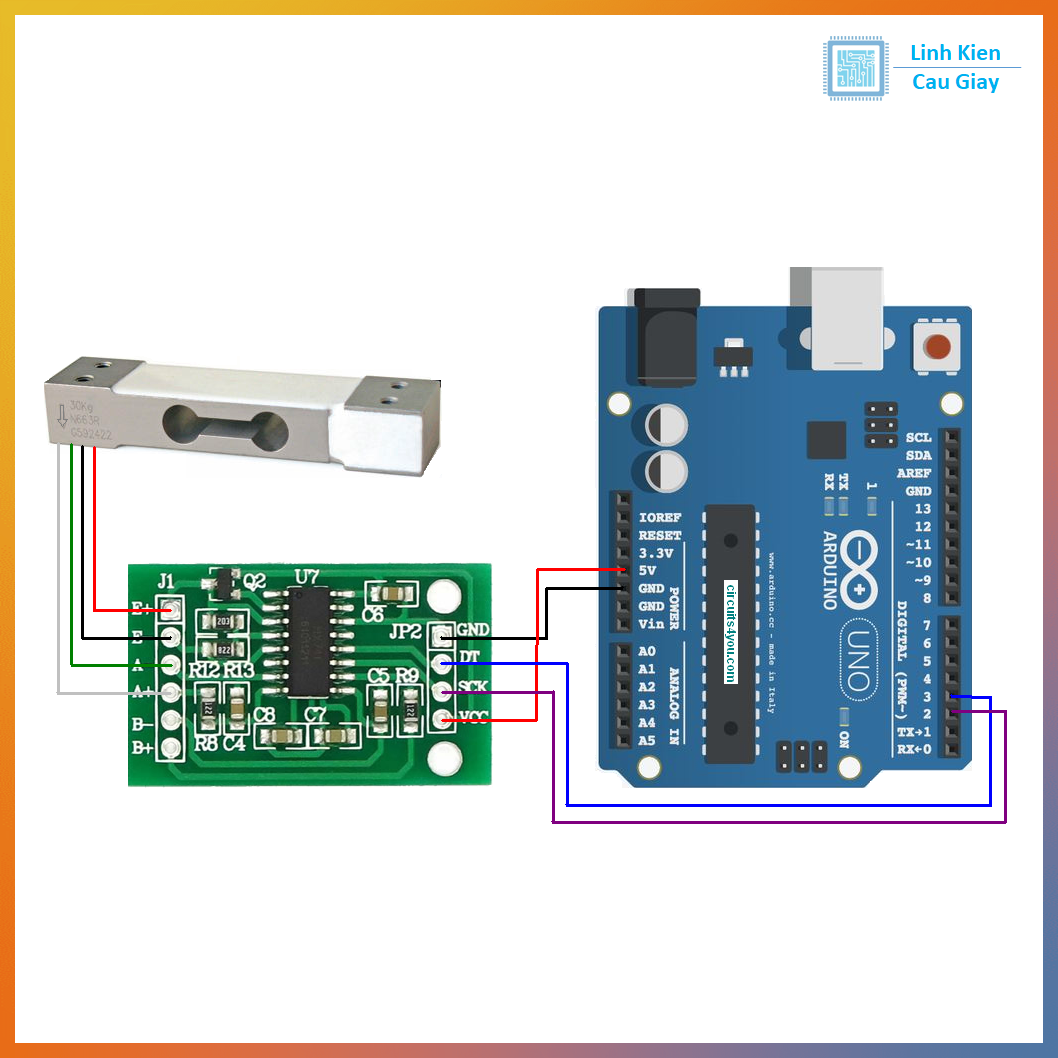 Tương thích với các module khuếch đại HX711, module ADC loadcell, dễ giao tiếp với Arduino, ESP32, STM32….