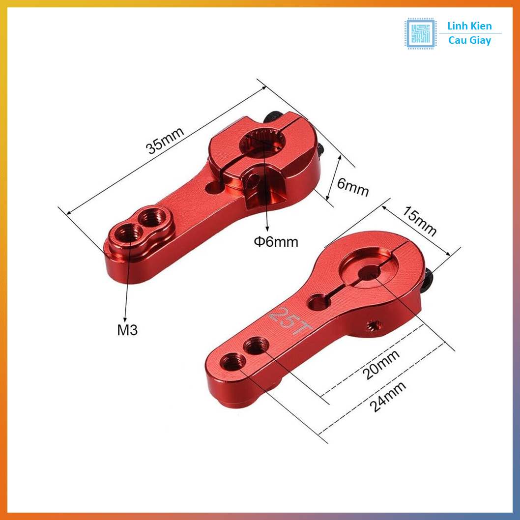 Thiết kế 25 răng (25T) tiêu chuẩn cho các dòng servo mô-men lớn như MG995, MG996R, MG946, MG945, và tương thích tốt với FUTABA – S3003.