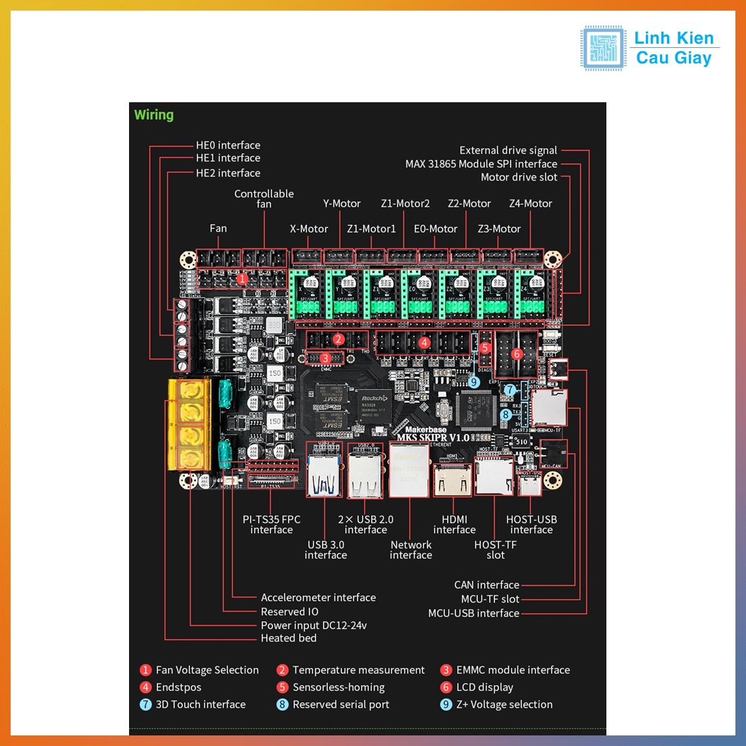 | Hệ điều hành | Armbian + Klipper tích hợp sẵn |