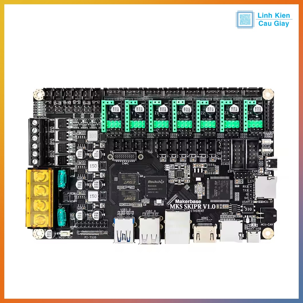 MKS SKIPR là bo mạch điều khiển máy in 3D thế hệ mới của Makerbase, được thiết kế để chạy Klipper Firmware với cấu trúc mạnh mẽ: 1 máy tính nhúng + 1 main điều khiển tích hợp trong cùng một bo duy nhất. Không cần Raspberry Pi, không cần kết nối dây phức tạp – SKIPR là giải pháp all-in-one cho các dòng máy in 3D cao cấp như Voron, CoreXY, Ender, CR-10…