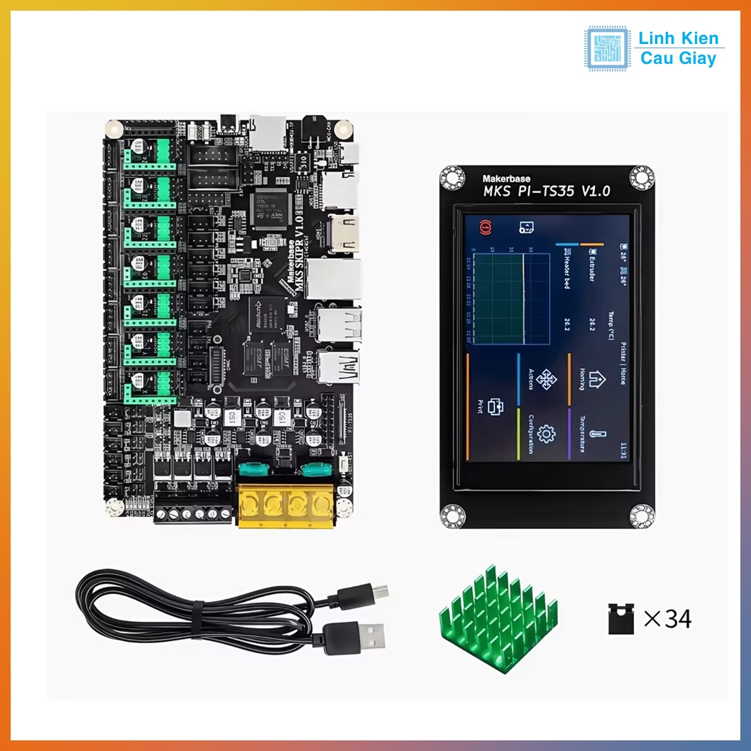 Bộ combo đi kèm màn hình cảm ứng MKS Pi TS3.5, giao diện KlipperScreen tối ưu, giúp thao tác vận hành – điều chỉnh – điều khiển máy in trở nên nhanh hơn, trực quan hơn và ổn định hơn.