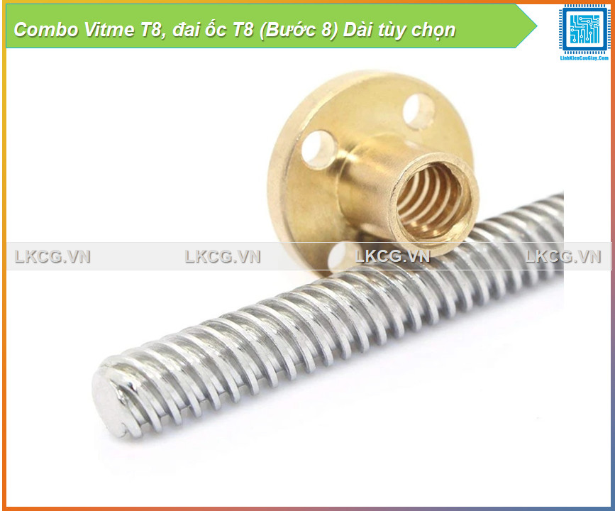 Combo Vitme T8, đai ốc T8 (Bước 8) Dài tùy chọn