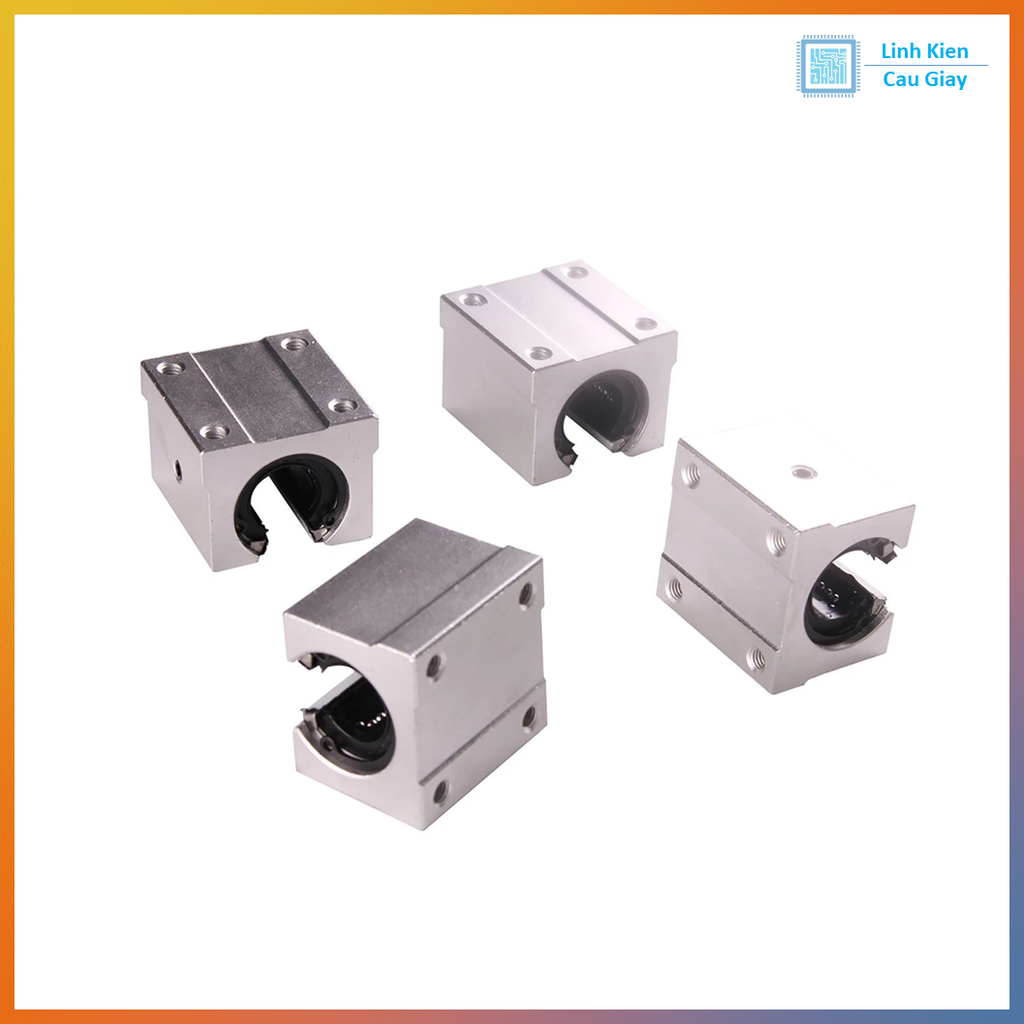 Vỏ ngoài được làm từ nhôm đúc hoặc nhôm CNC, kết hợp bạc đạn LM-UU ngắn bên trong, đảm bảo độ bền, độ ổn định và khả năng hoạt động lâu dài trong môi trường máy CNC, máy in 3D và các cơ cấu cơ khí chính xác.
