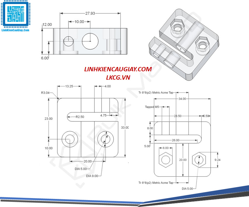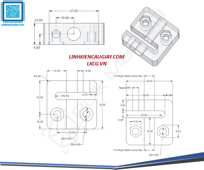 Đai ốc Anti-Backlash Vít me T8 bước 8