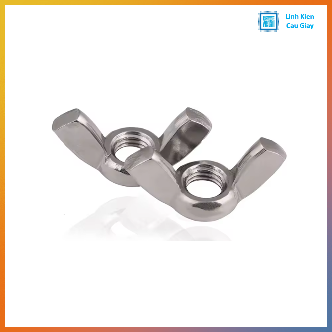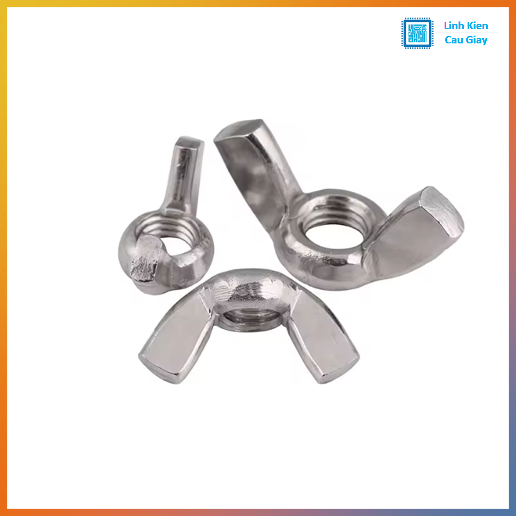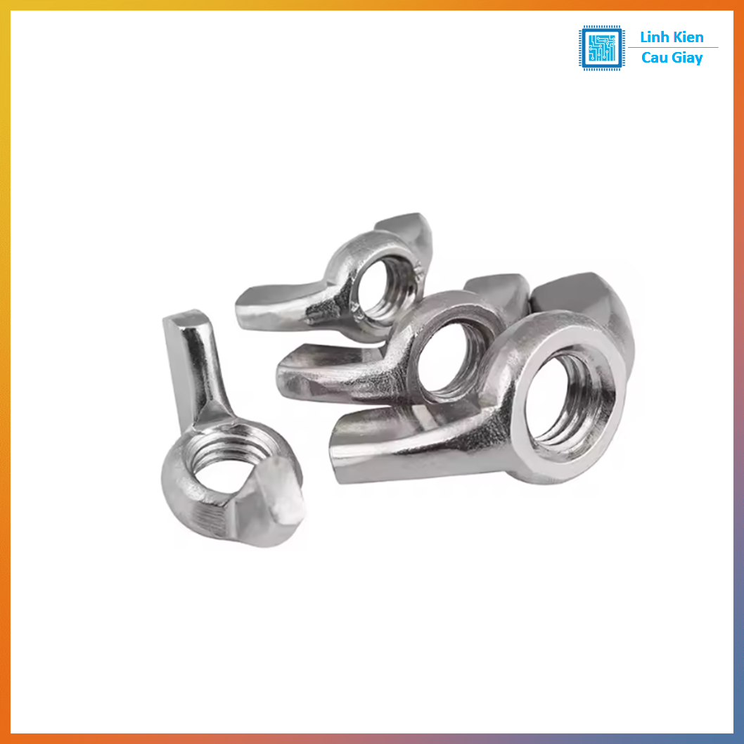 Đai ốc cánh bướm (wing nut) làm từ thép (thường mạ sáng chống gỉ), thiết kế 2 cánh giúp vặn siết bằng tay nhanh chóng mà không cần cờ lê. Phù hợp cho các vị trí cần tháo lắp thường xuyên, điều chỉnh nhanh, gá kẹp tạm thời trong cơ khí, đồ gá, DIY, bàn kẹp, mô hình…