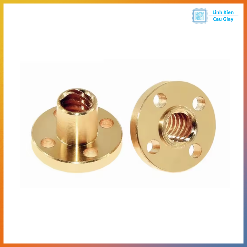 Đai ốc vitme T8 bước 8 và bước 2 được làm từ đồng thau chống mài mòn, tương thích với trục vít me T8 dùng trong máy CNC, máy in 3D, máy khắc laser và cơ cấu tịnh tiến chính xác.