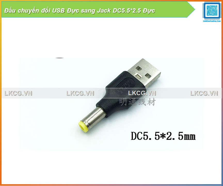 Đầu chuyển đổi USB Đực sang Jack DC5.5*2.5 Đực