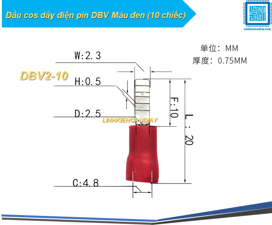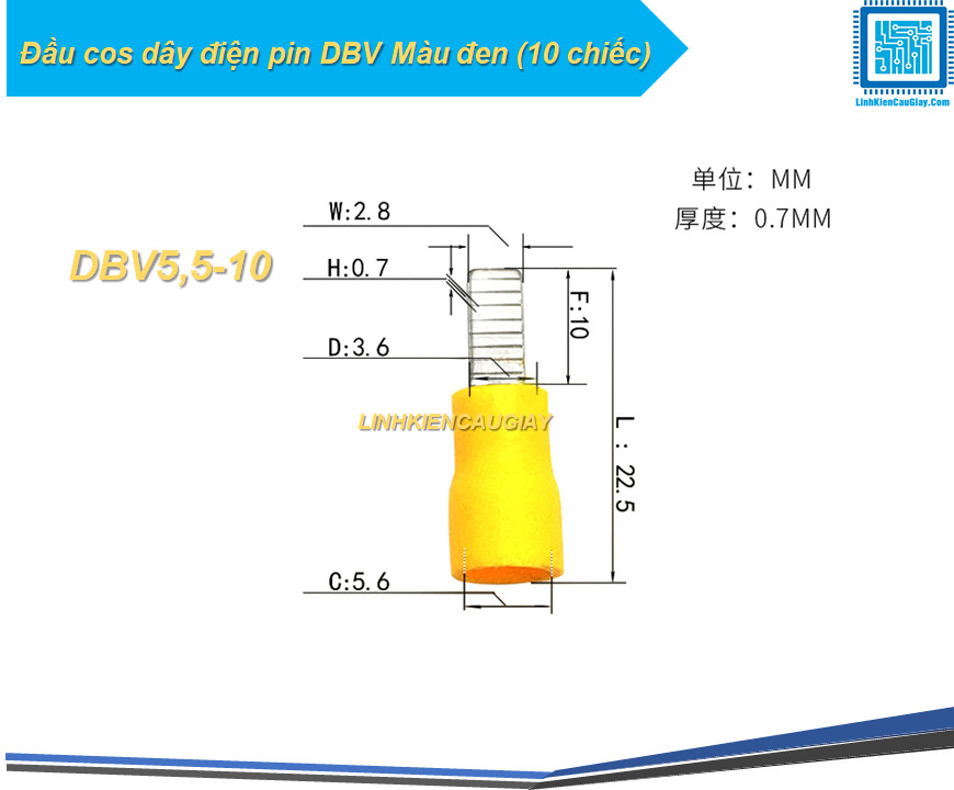 Đầu cos dây điện pin DBV Màu đen (10 chiếc)