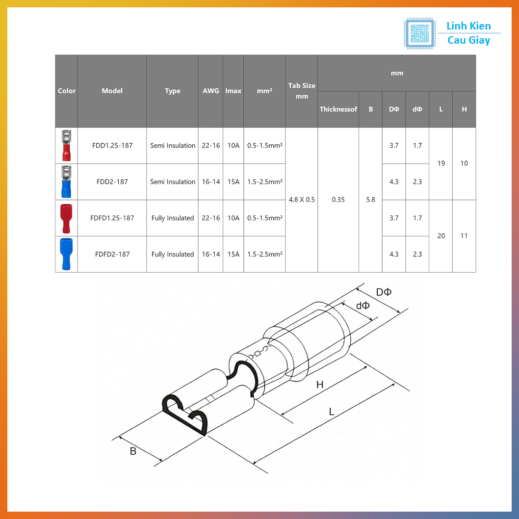 #ĐầuCosFDD1, #CosNốiNhanh, #CosCái, #CosBọcNhựaĐỏ, #ĐầuCos22Đến16AWG, #ĐầuCos05Đến15mm2, #FDD125110, #FDD1187, #FDD125250, #KìmBấmCos, #TủĐiện, #NốiDâyAnToàn, #DIYĐiệnTử