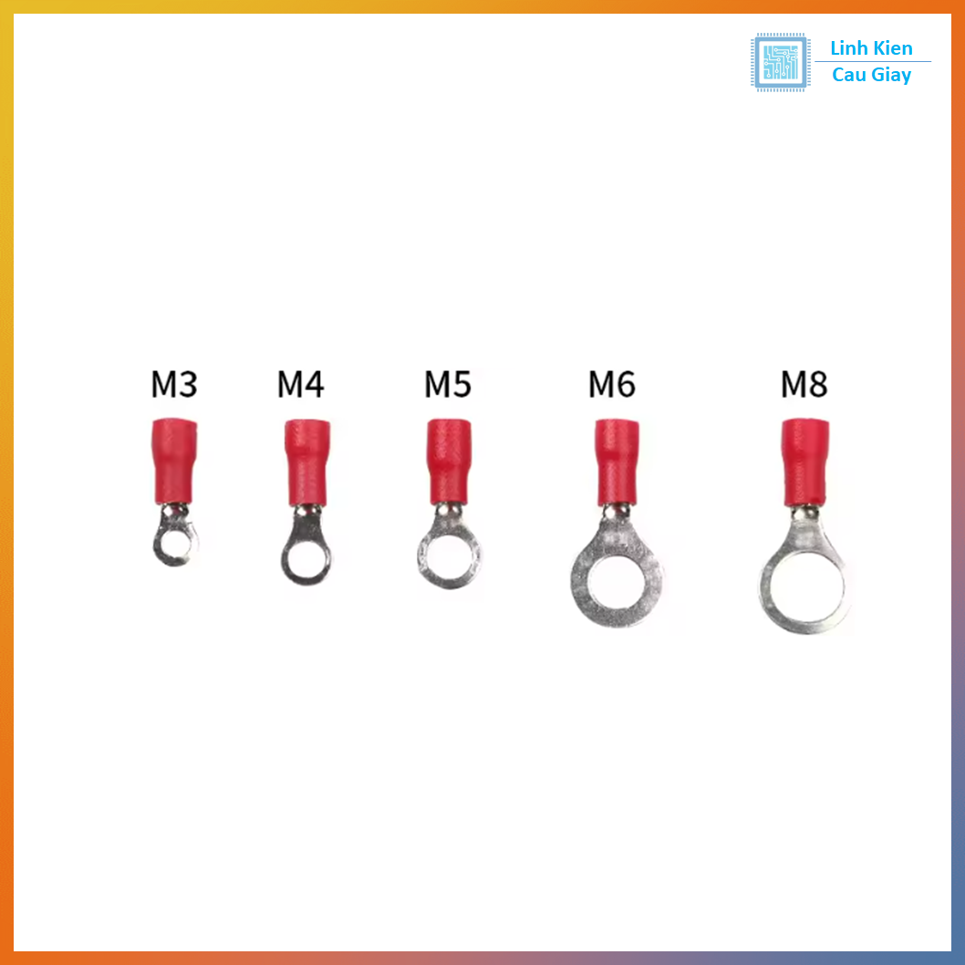 Đầu cos khuyên tròn RV1.25 màu đỏ (10 chiếc) là cos tròn bọc nhựa PVC dùng để bấm đầu dây điện giúp đấu nối vào ốc vít/cọc bắt chắc chắn, tiếp xúc ổn định, hạn chế tòe sợi – chập cháy. Chuẩn RV1.25 phù hợp dây có tiết diện 0.5–1.5mm² (thường dùng cho dây 0.75 / 1.0 / 1.5mm²). Phần “đuôi” sau dấu “-” chính là đường kính lỗ khuyên (lỗ bắt vít), chọn theo size ốc M3/M4/M5/M6/M8… rất tiện khi lắp tủ điện, nguồn, xe máy/ô tô, DIY, thiết bị công nghiệp.