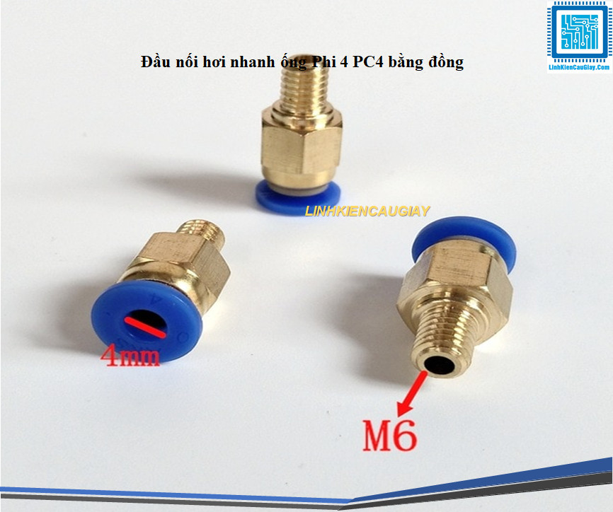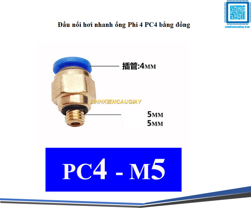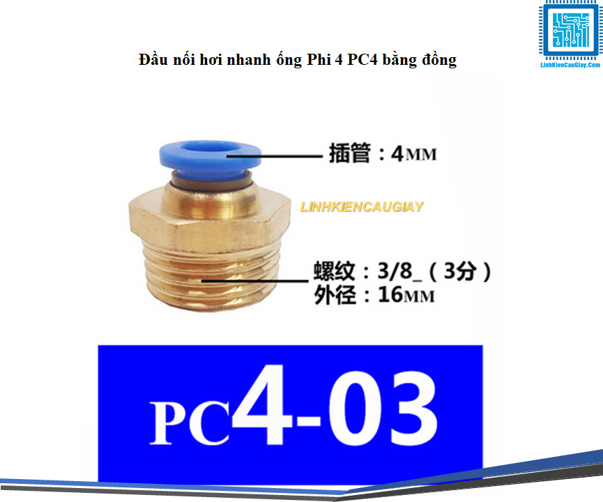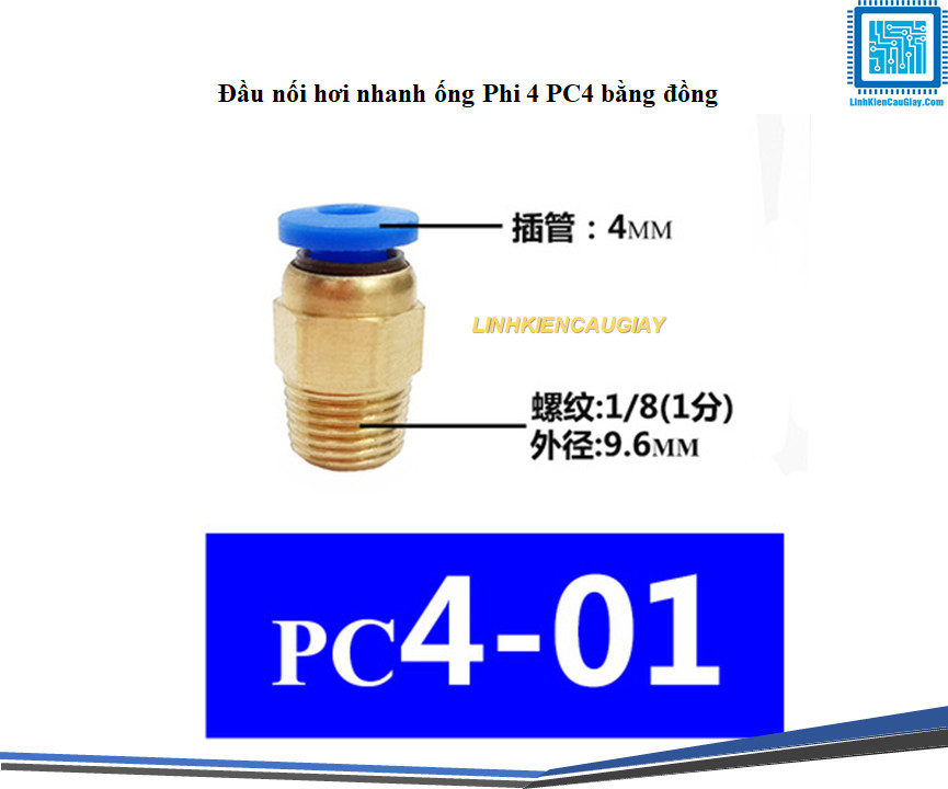 Đầu nối hơi nhanh ống Phi 4 PC4 bằng đồng