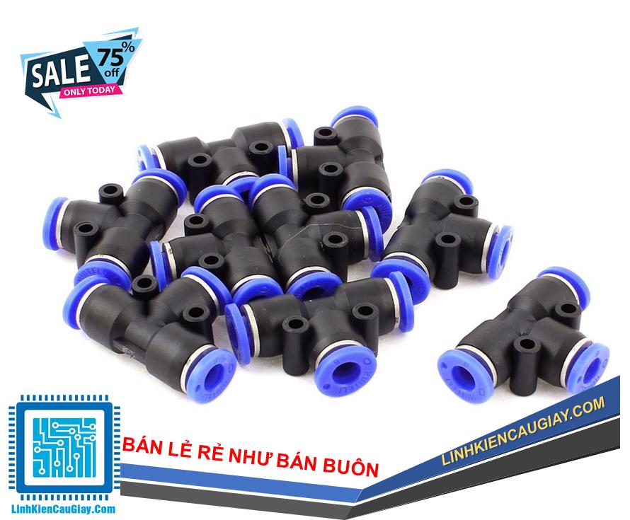 Đầu nối hơi nhanh chia 3 chữ T PE4, PE6, PE8, PE10, PE12