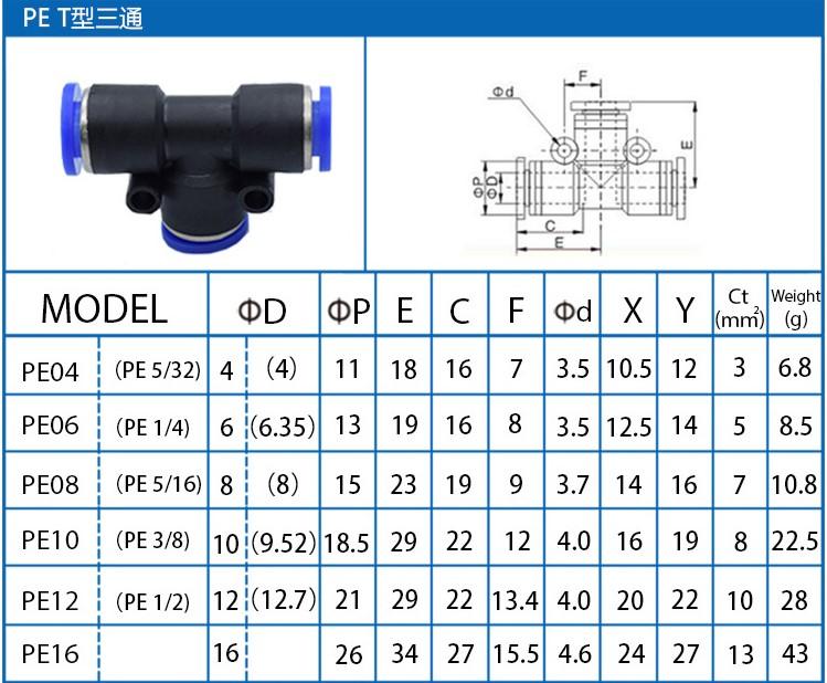 | PE06 | Đầu nối nhanh T3 PE6 |