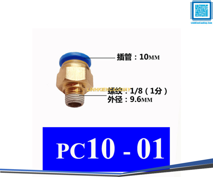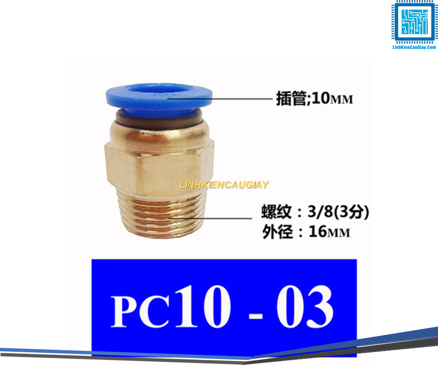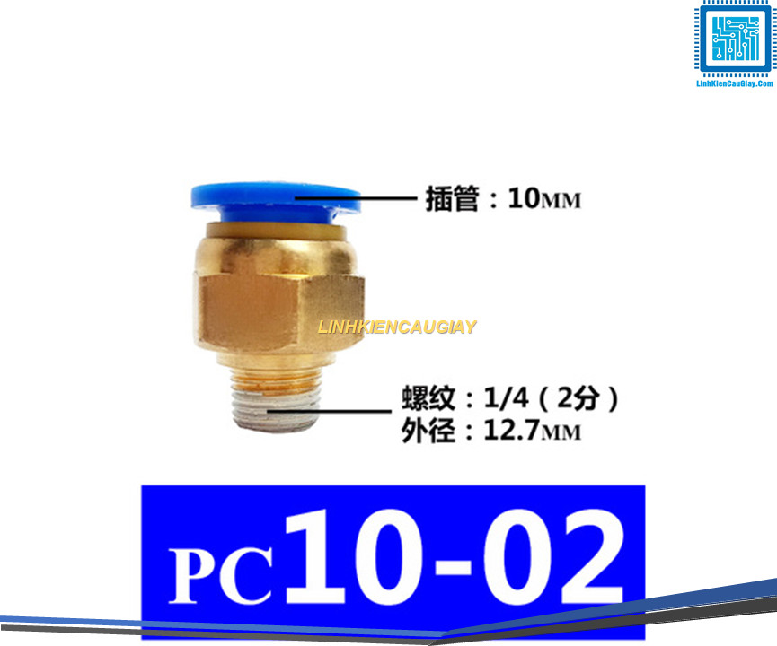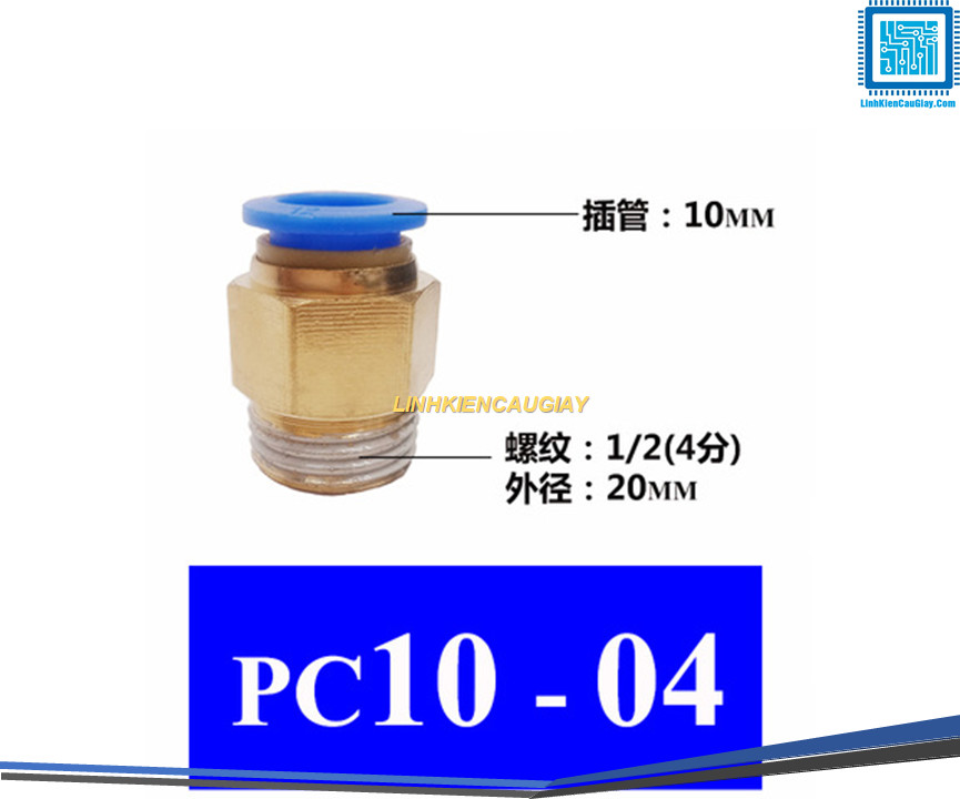 Đầu nối hơi nhanh ống Phi 10 (PC10) bằng đồng