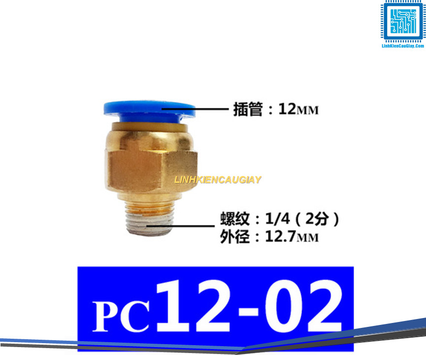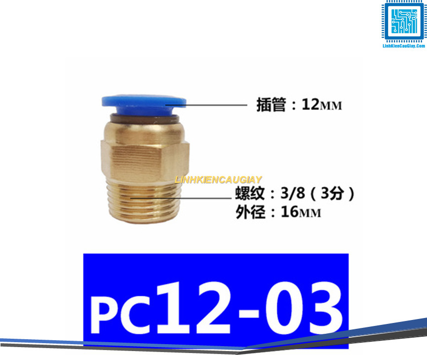 Đầu nối hơi nhanh ống Phi 12 (PC10) bằng đồng