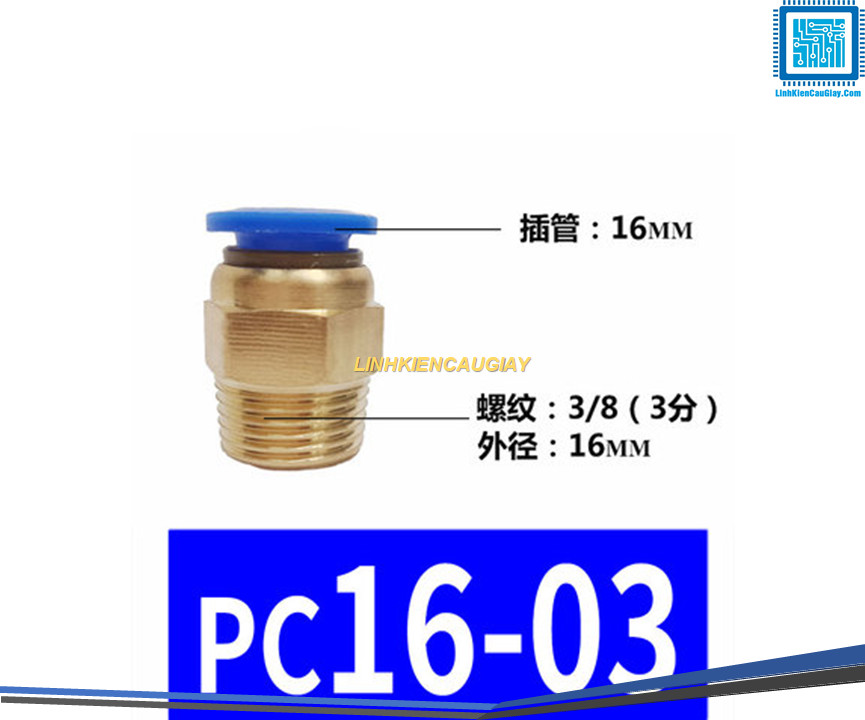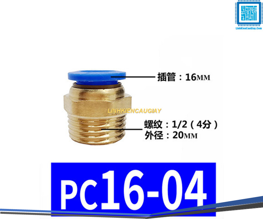 Đầu nối hơi nhanh ống Phi 16 (PC16) bằng đồng