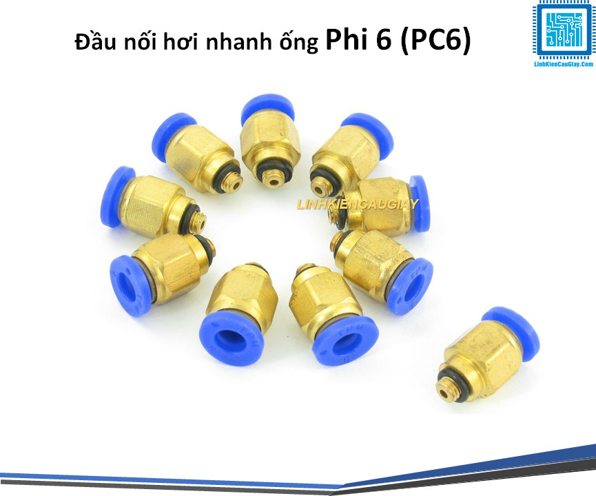 Đầu nối hơi nhanh ống Phi 6 (PC6) bằng đồng