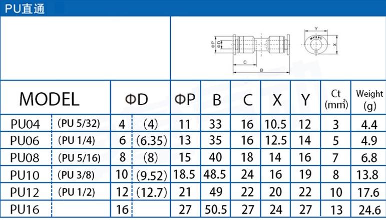 | PU16 | Đầu nối nhanh ống nhựa thẳng PU16 |