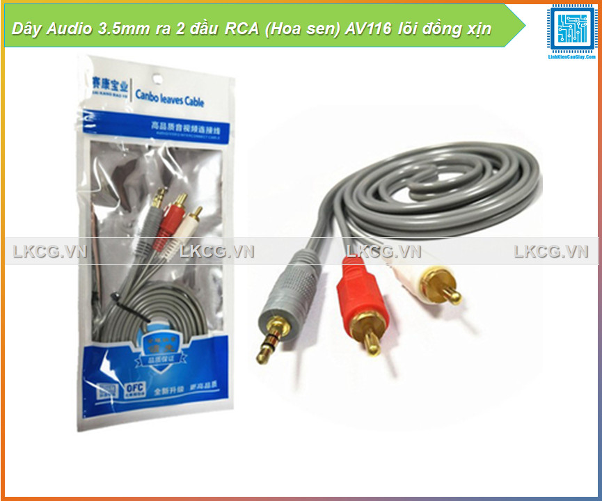 Dây Audio 3.5mm ra 2 đầu RCA (Hoa sen) AV116 lõi đồng xịn