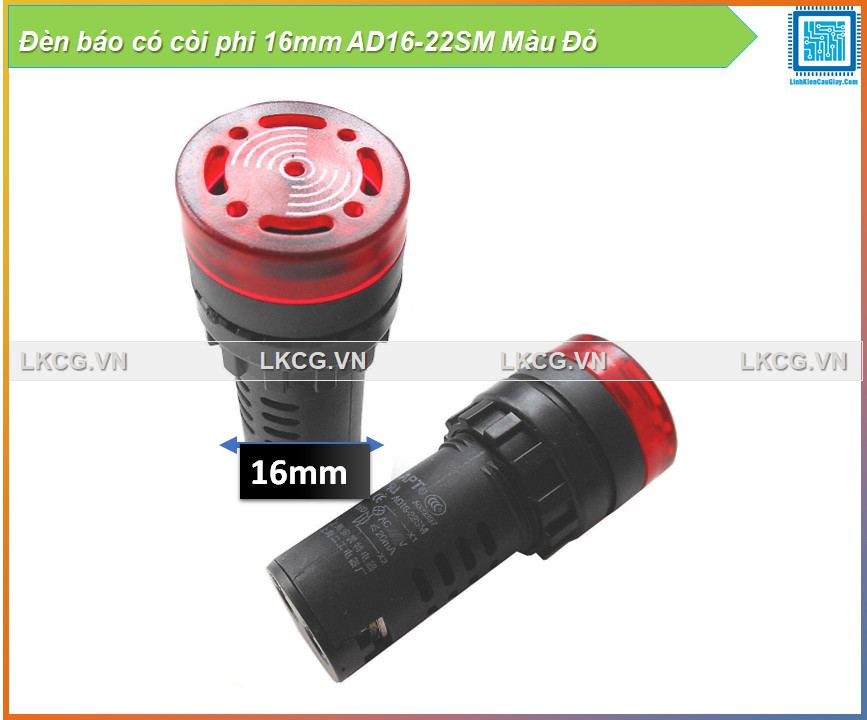 Đèn báo có còi phi 16mm AD16-22SM Màu Đỏ