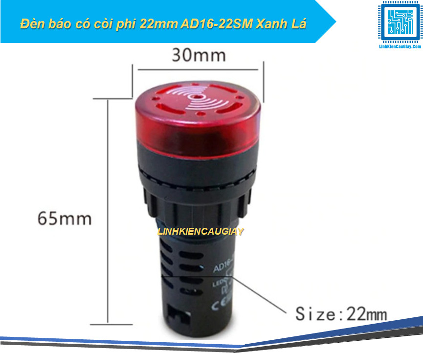 Đèn báo có còi phi 22mm AD16-22SM Màu xanh lá