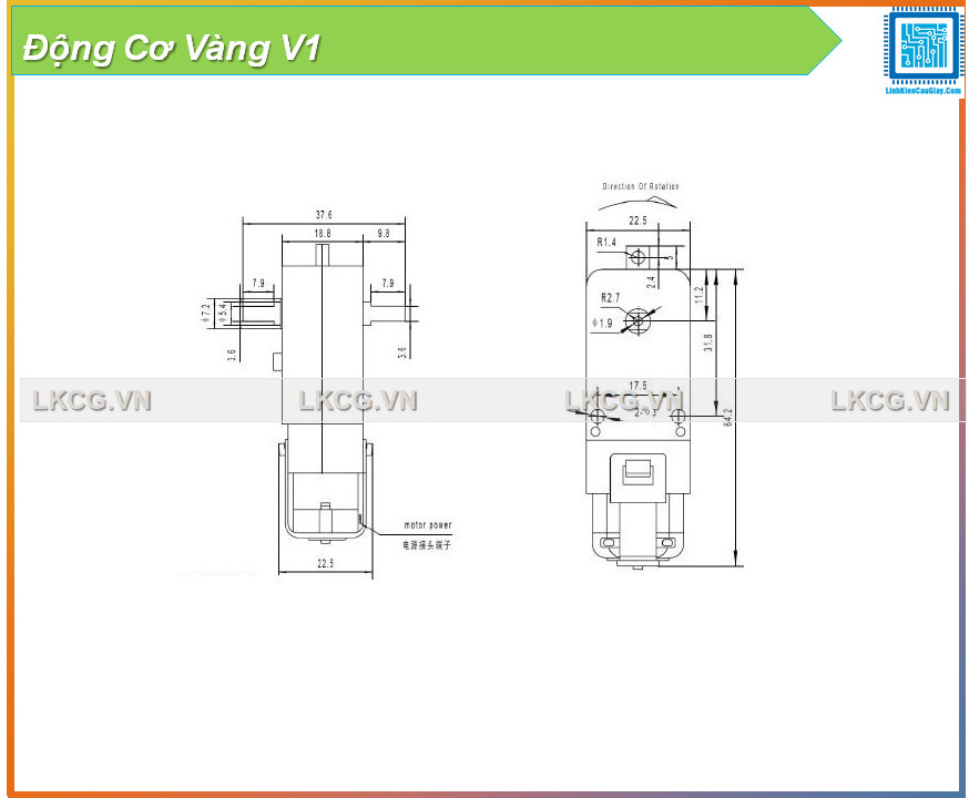 Mômen xoắn cực đại: 800gf cm min 1:48 (3V) - Tộc độ Không tải 125 vòng/ 1 phút