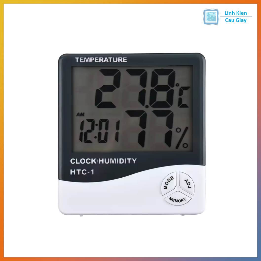 Đồng hồ đo độ ẩm và nhiệt độ HTC-01 là nhiệt ẩm kế điện tử hiển thị LCD cỡ lớn, giúp theo dõi nhanh nhiệt độ (°C/°F) và độ ẩm (%RH) trong phòng.