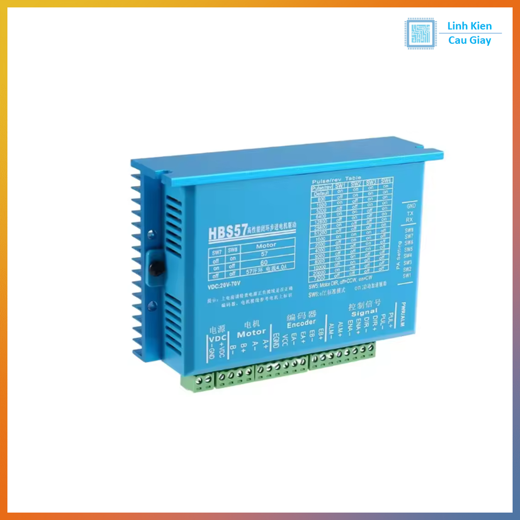 Driver HBS57 là sản phẩm mạch điều khiển động cơ servo Hybrid với công nghệ kỹ thuật số DSP 32bit mới giúp cho động cơ hoạt động tốc độ, độ chính xác cao và tiếng ồn thấp hơn 40% so với mạch điều khiển thông thường.
