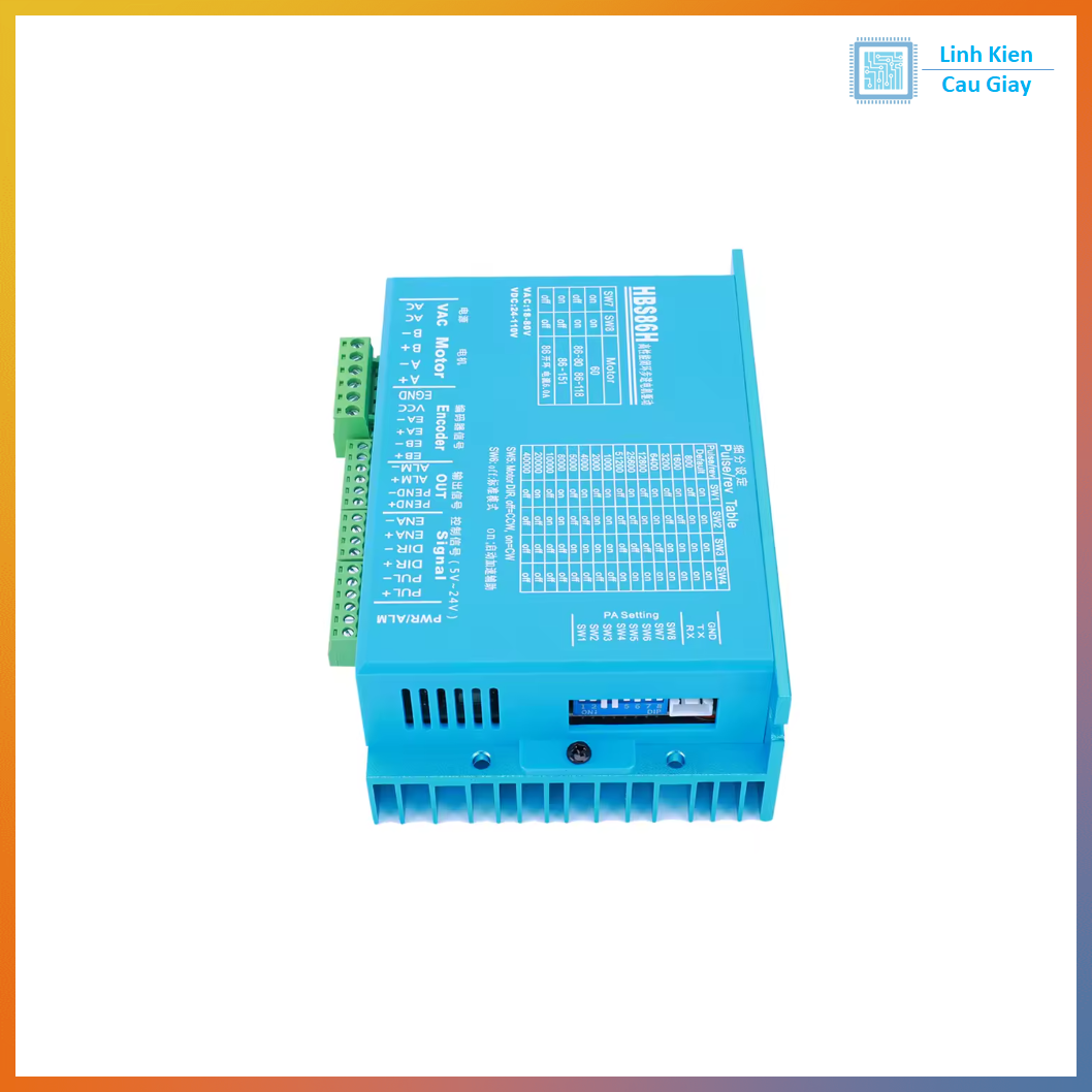 HBS86H là driver điều khiển động cơ bước vòng kín (Closed-loop) dạng Hybrid Step Servo giúp tăng độ chính xác và ổn định so với driver bước thường. Nhờ công nghệ vòng kín, driver tự bù sai lệch vị trí để giảm/loại bỏ mất bước (sync loss), mở rộng dải tốc độ–mô men, chạy êm và ít nóng hơn. HBS86H phù hợp các hệ CNC, máy khắc, máy cắt, cơ cấu trượt tải nặng cần lực lớn, phản hồi nhanh và tiếng ồn thấp. Tích hợp cổng RS232 thuận tiện cấu hình/tham số (tùy phần mềm/thiết bị đi kèm).