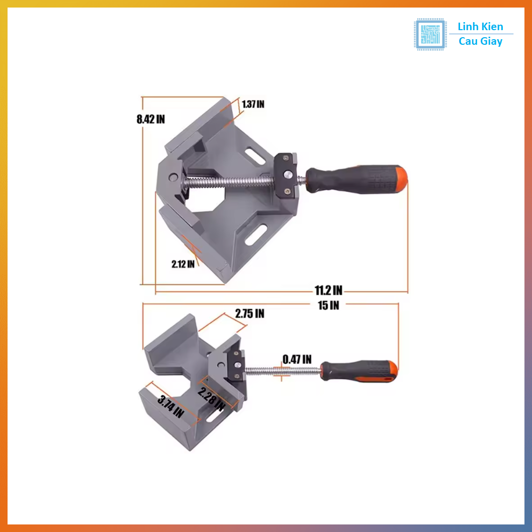 Kẹp góc 90° hạng nặng là dụng cụ cố định 2 chi tiết theo góc vuông chuẩn 90 độ khi lắp ráp, dán keo, khoan, bắt vít. Thiết kế 1 tay cầm siết nhanh, hàm kẹp điều chỉnh được giúp giữ chắc các vật liệu như gỗ, MDF, nhôm định hình, sắt hộp mỏng, acrylic… phù hợp cả xưởng mộc lẫn DIY tại nhà. Thân kẹp chắc chắn, chịu lực tốt, hỗ trợ căn vuông nhanh, giảm lệch khi lắp ráp khung.