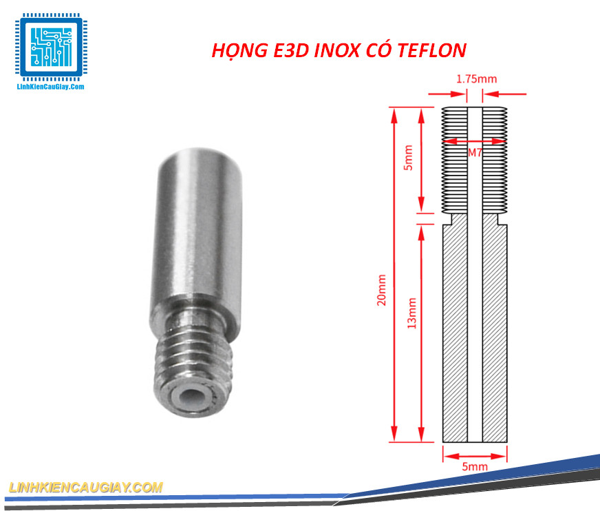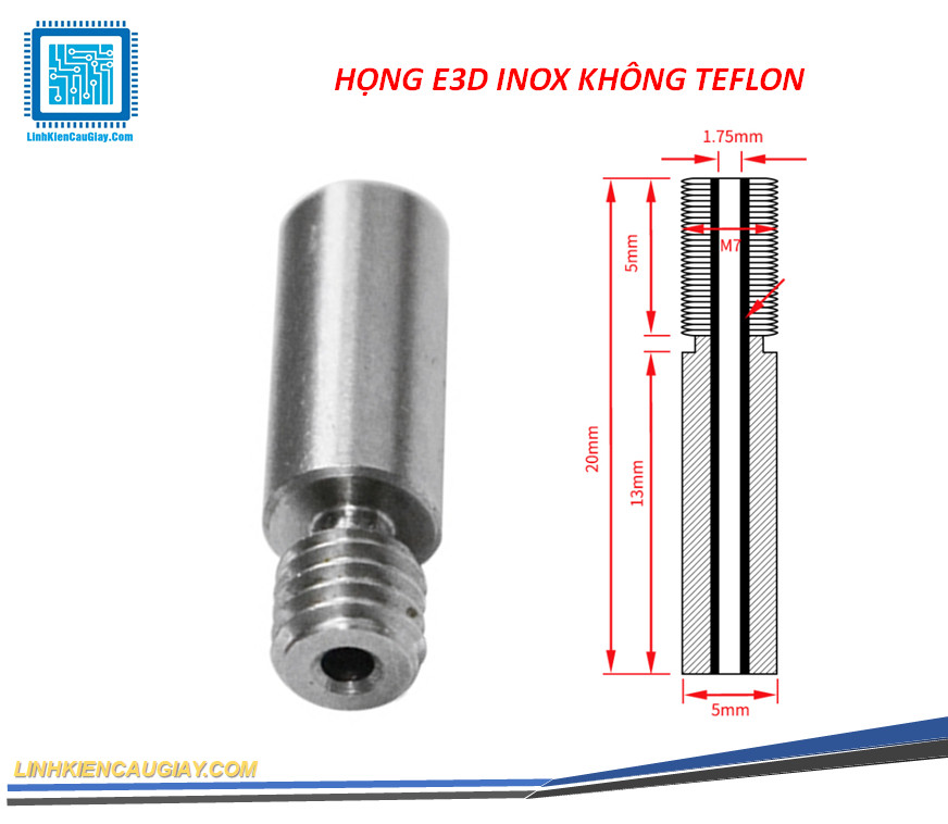 HỌNG DẪN NHỰA INOX E3D REN M7 CÁC LOẠI Sử dụng cho các bộ đùn nhựa E3D V6 trực tiếp. Tùy theo nhu cầu của người dùng và nhựa in ABS, PLA, PLA F, PETG có lựa chọn họng dẫn nhựa phù hợp. Họng dẫn nhựa tuy nhỏ bé nhưng cũng là thành phần chiếm 20% thành công in nhựa. Do nhựa có nhiều tính chất dẻo, cứng, mềm khác nhau người dùng nên lựa chọn họng dẫn nhựa phù hợp với mục đích sửa dụng