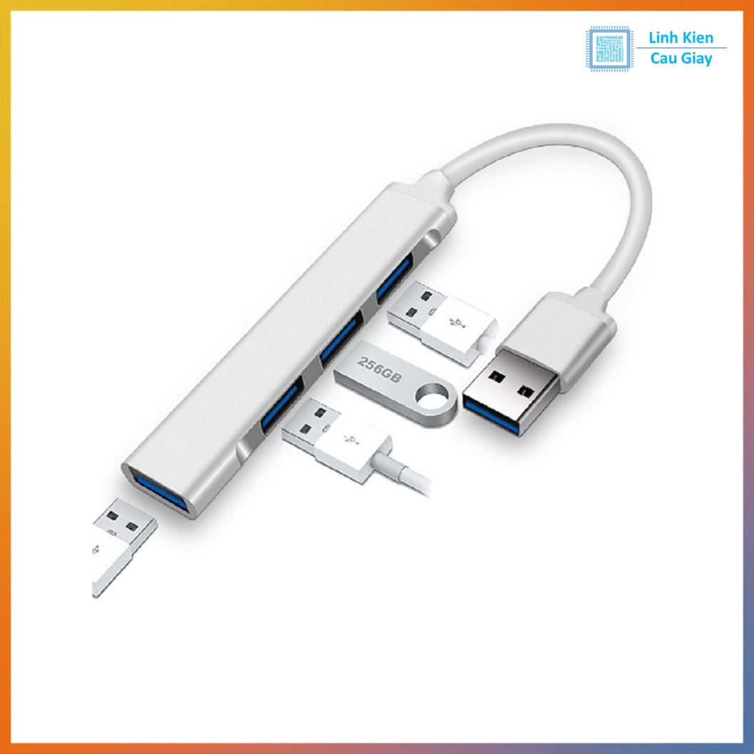Hub mở rộng Type-C sang USB giúp bạn biến 1 cổng USB-C trên laptop/tablet/điện thoại thành 4 cổng USB-A để cắm thêm thiết bị. Sản phẩm theo hình gồm 1 cổng USB 3.0 (màu xanh – tốc độ cao) và 3 cổng USB 2.0 (kết nối chuột, bàn phím, máy in…). Thiết kế nhỏ gọn, vỏ hợp kim nhôm tản nhiệt tốt, cắm là nhận (Plug & Play), tiện mang theo đi làm/đi học.